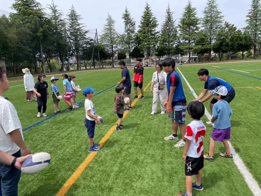 金沢大学ラグビー部がラグビー体験教室を開催、お子様も親御さんもラグビーを楽しんでおられました。